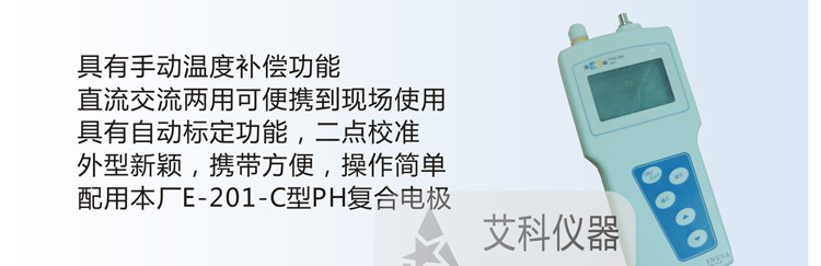 ,適用于工礦、研究院所的化驗室取樣測定水溶液的酸度(pH)值和測量電極電位(mV)值,本儀器體積小,攜帶方便,特別適合于在無交流電源的地方作水溶液的酸度測定。